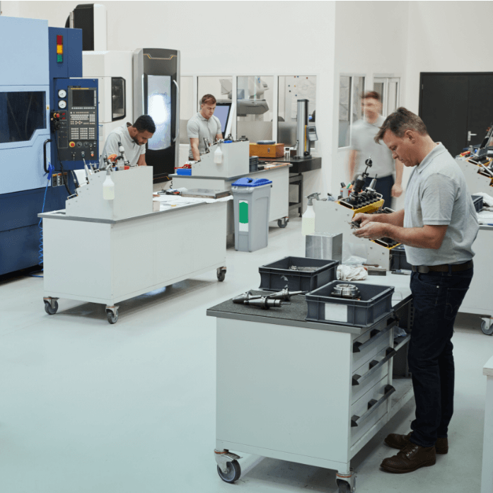 Unsere Mitarbeiter sind motiviert und qualifiziert und legen besonderes Augenmerk auf eine exakte Fertigungsqualität sowie schnelle Lieferzeiten.