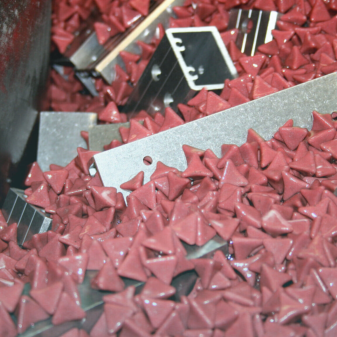 Scharfe Kanten und störende Grate werden im Gleitschliffverfahren schonend entfernt. Gleichzeitig werden die Werkstücke dabei gereinigt und entfettet.